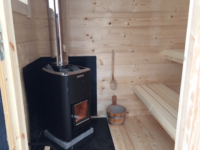 Bastustuga med vedkamin och plats för 4-6 personer.